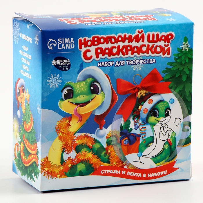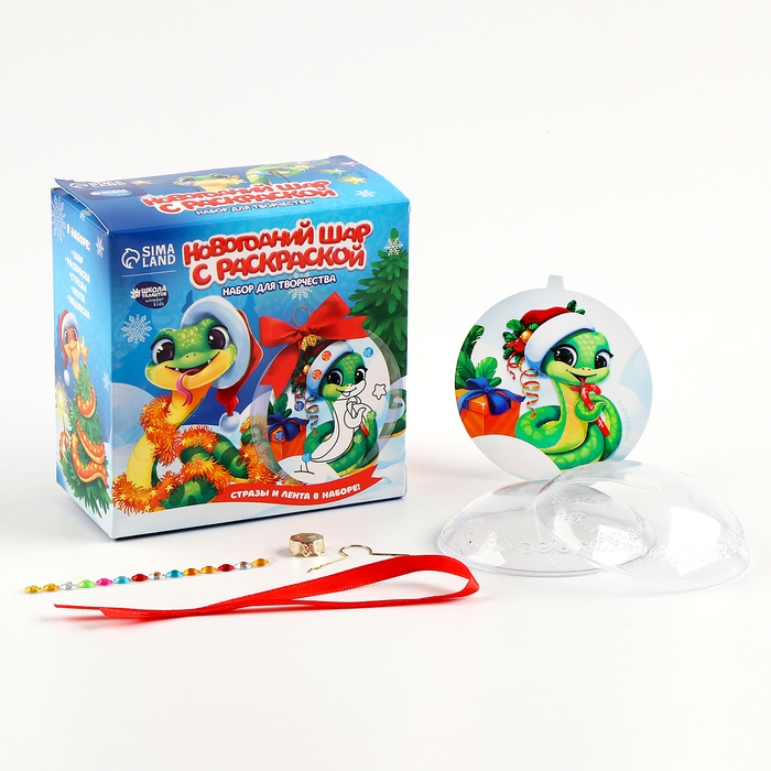 Ёлочный шар своими руками на новый год с раскраской «Змея», новогодний набор для творчества, символ года 2025