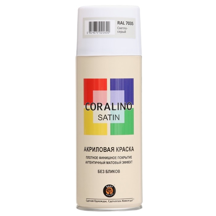 Эмаль-аэрозоль полуматовая, Светло-Серый 520мл CORALINO SATIN RAL7035