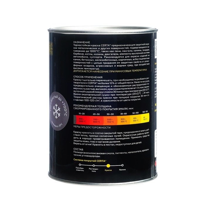 Эмаль термостойкая «Церта», ж/б, до 650 °С, 0,8 кг, серебристая