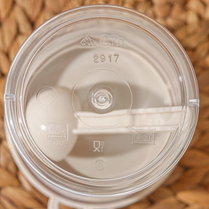 Банка для сыпучих продуктов изготовлена из пластика. Имеет плотно закрывающуюся крышку, которая защищает еду от влаги и посторонних запахов. В ёмкости удобно хранить крупы, специи, макаронные изделия, сахар, муку и бобовые.