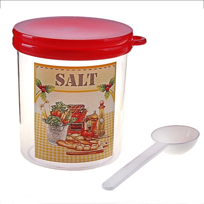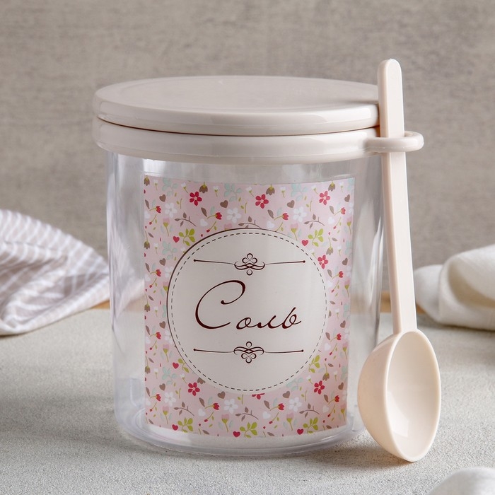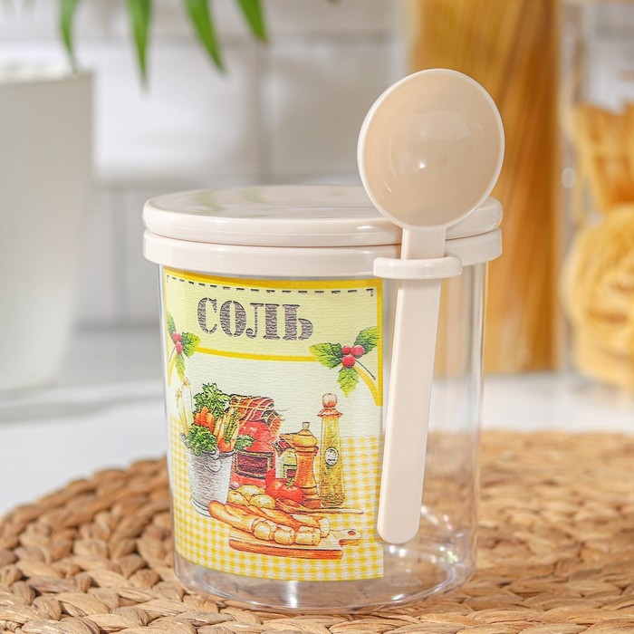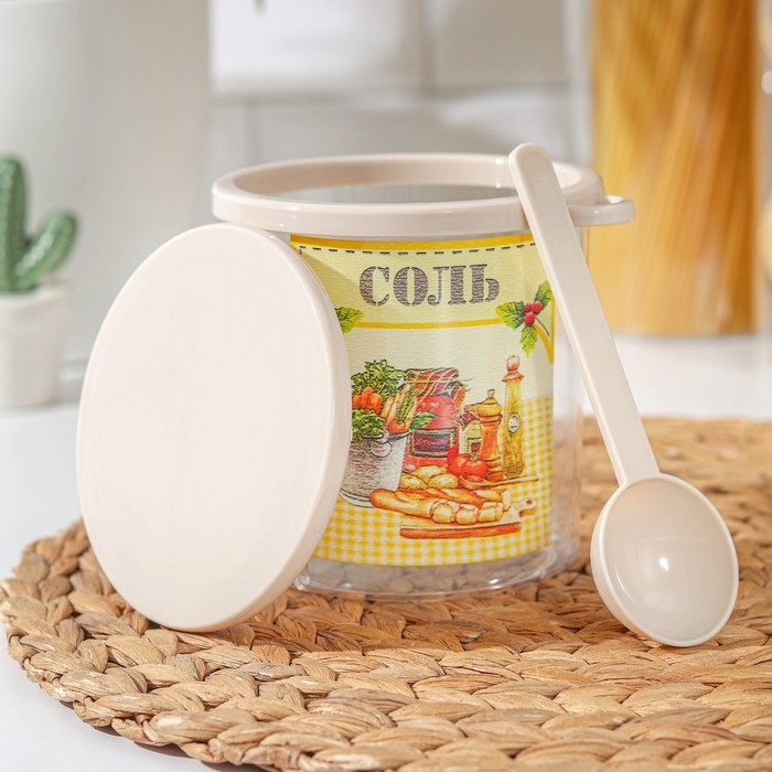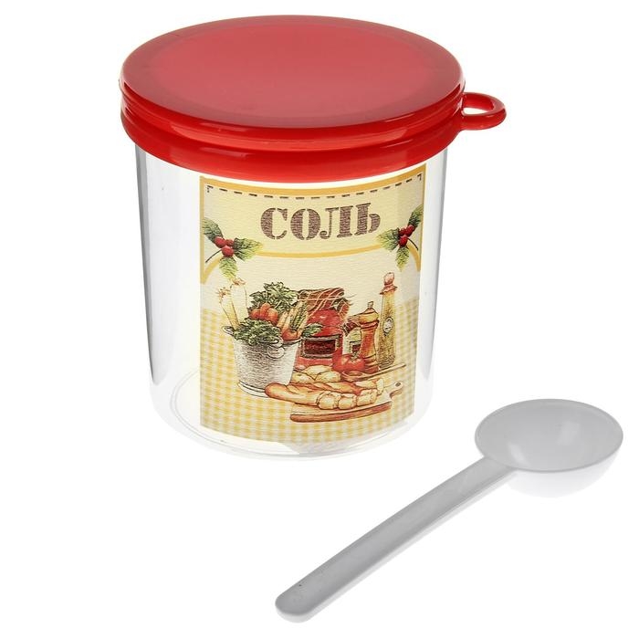 Ёмкость для соли с ложкой «Ассорти. Соль», 700 мл, пластик, цвет МИКС