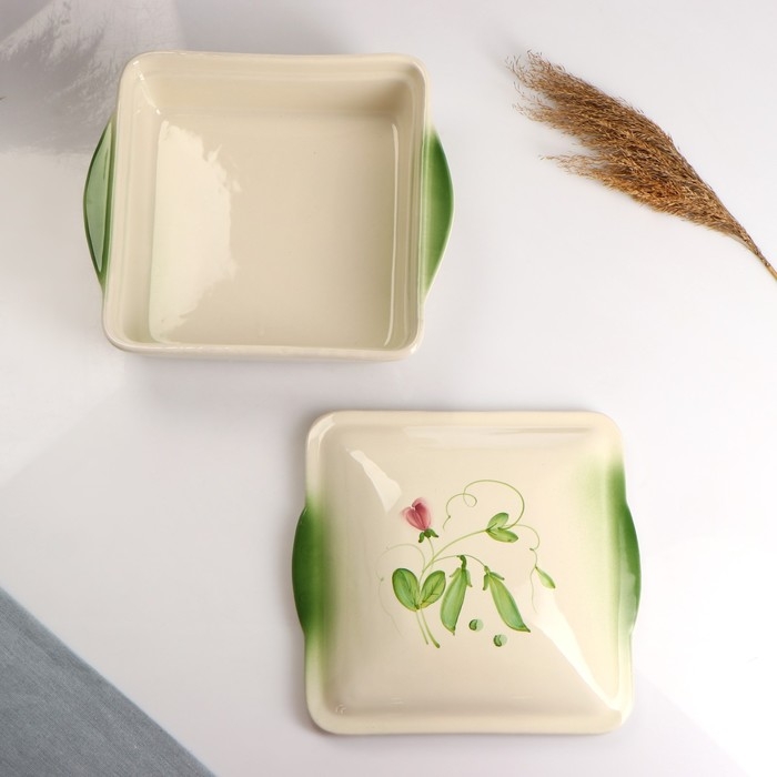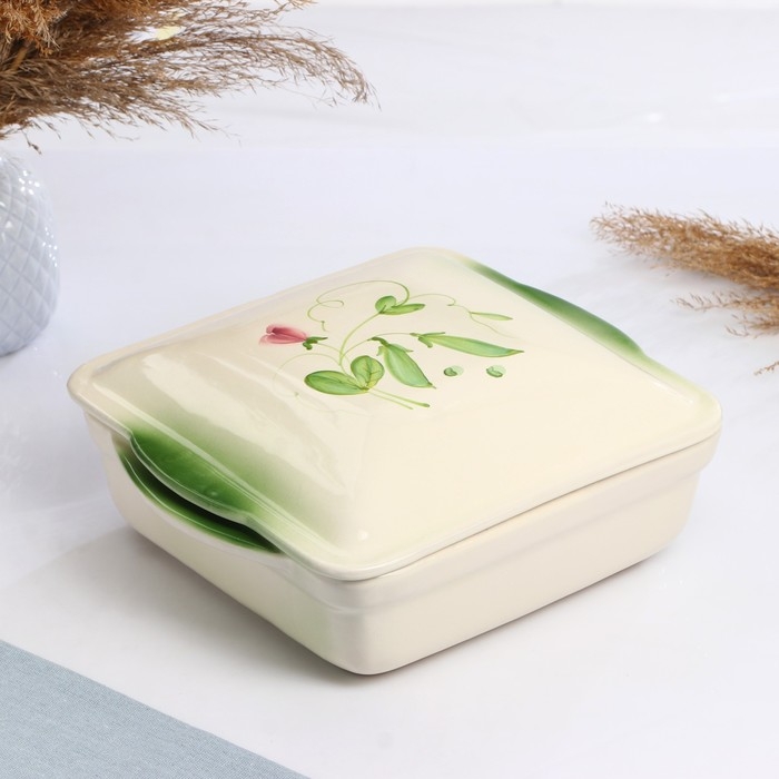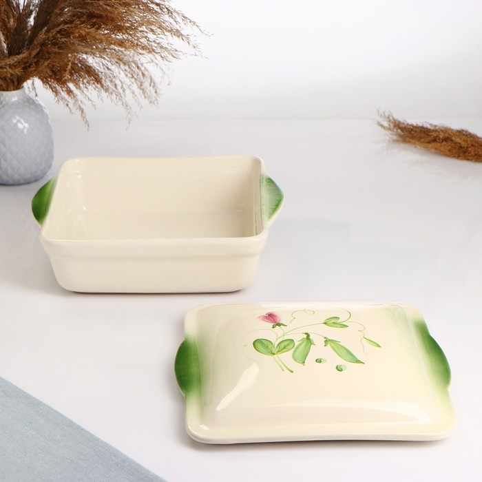 Емкость для запекания "Тетра с крышкой" 2,5л / 29х24х11,5см, горошек