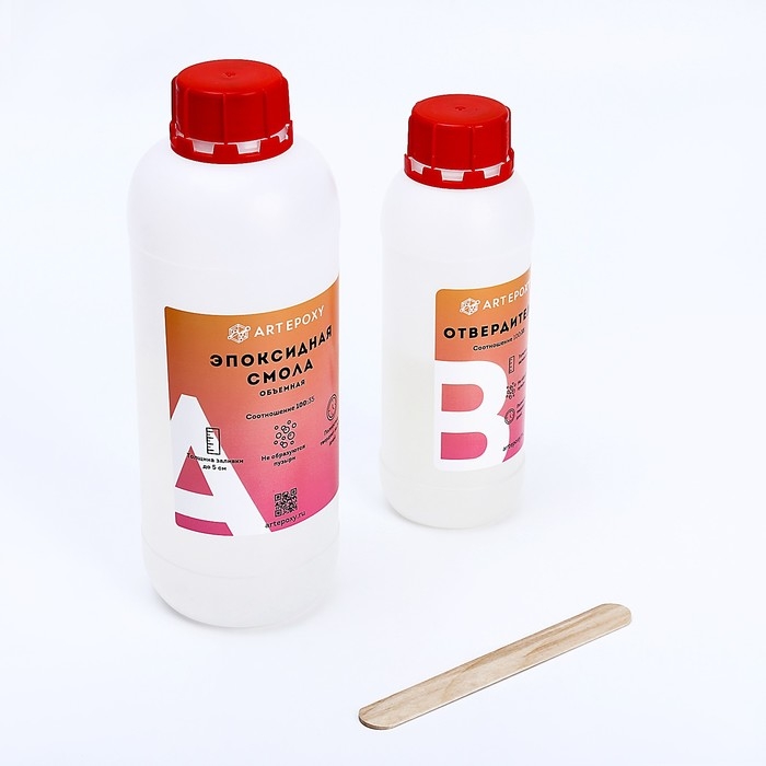 «ArtEpoxy. Объёмная» — низковязкая двухкомпонентная эпоксидная смола. Подходит для всех видов творческих работ: создания ювелирных изделий, заливки столов, полов, стабилизации древесины. Количество слоёв не ограничено, не содержит растворителей.
