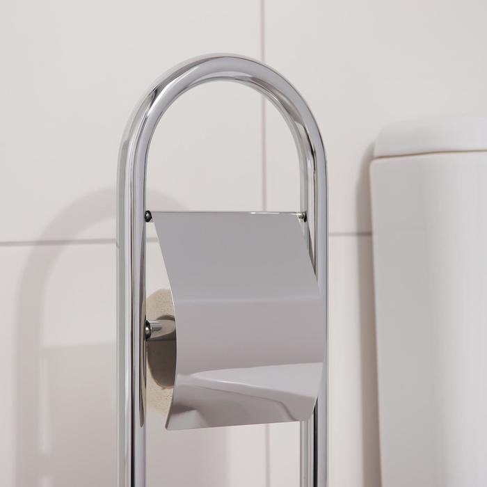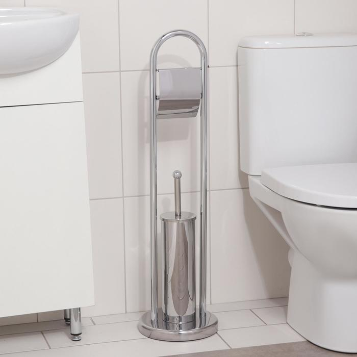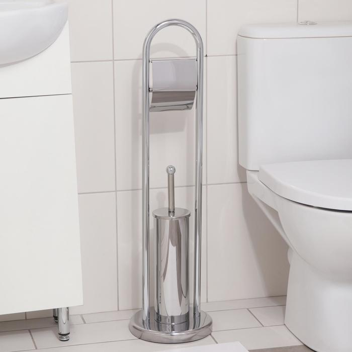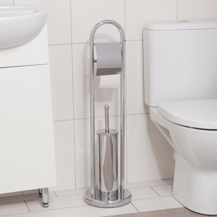 Ёрш для унитаза напольный Accoona, 21,5×21,5×81 см, с держателем для туалетной бумаги, цвет хром