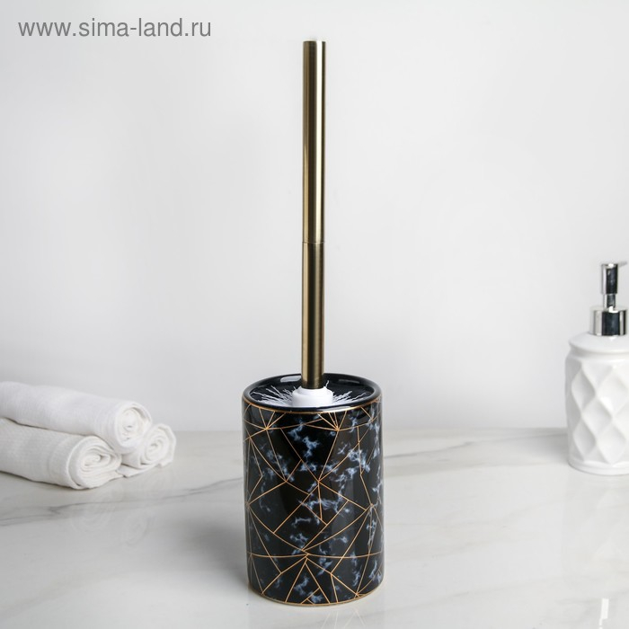 Ёршик для унитаза с подставкой «Лили», 9,5×9,5×37 см, цвет чёрный