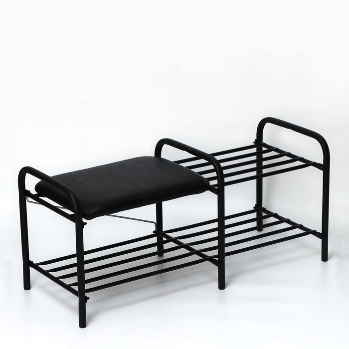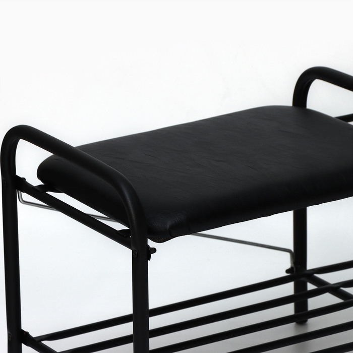 Этажерка для обуви с сиденьем «Люкс», 79×33×36 см, 2 полки, цвет чёрный