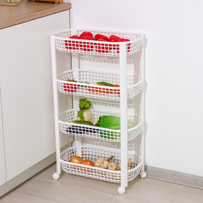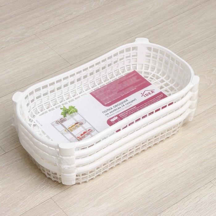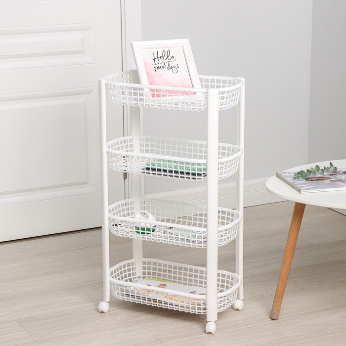 Этажерка напольная 4-х секционная, на колёсах, цвет белый