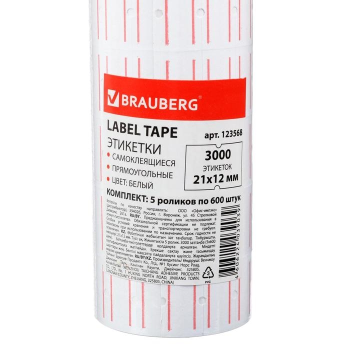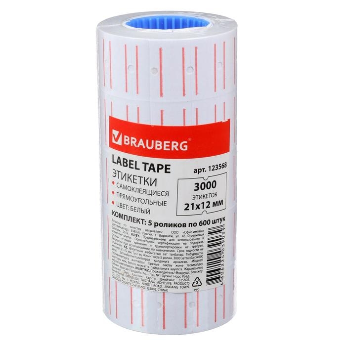Этикет-лента BRAUBERG предназначена для нанесения информации на товары вручную или с помощью этикет-пистолета. Цвет белый, форма— прямоугольная. Один рулон содержит 600 этикеток размером 21x12мм. 5рулонов в комплекте.Поставляются в термоусадочной пленке.