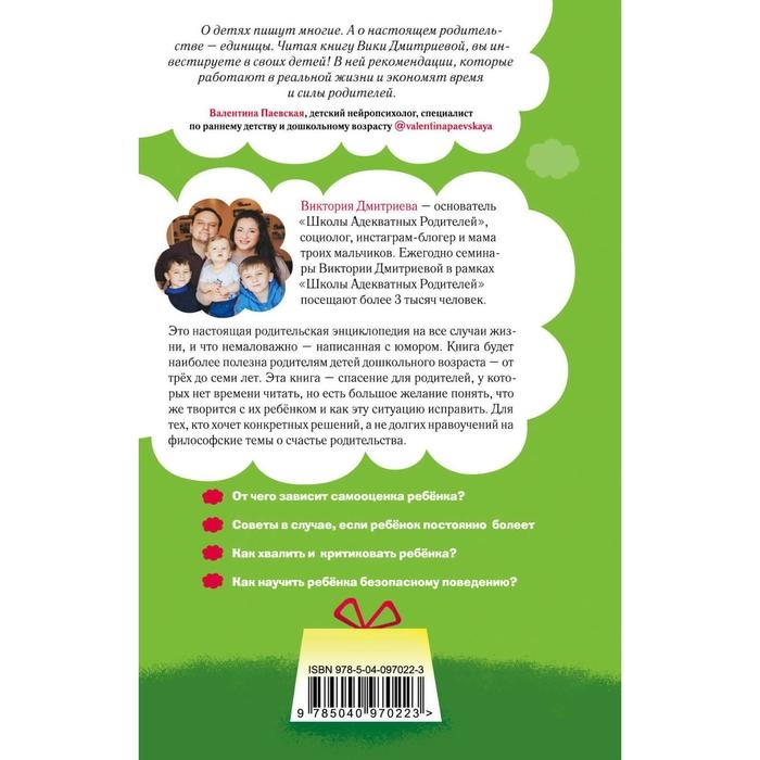 Настоящая родительская энциклопедия на все случаи жизни, и что немаловажно – написанная с юмором. Книга будет наиболее полезна родителям детей дошкольного возраста – от трех до семи лет. Эта книга - спасение для родителей, у которых нет времени читать, но есть большое желание понять, что же творится с его ребенком и как эту ситуацию исправить. Для тех, кто хочет конкретных решений, а не долгих нравоучений на философские темы о счастье родительства.