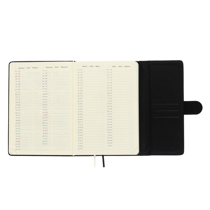 Ежедневник датированный 2024 A5 176 листов, deVENTE.Tudor, твёрдая обложка из искусственной кожи, ляссе, кремовый блок 70 г/м2, чёрный