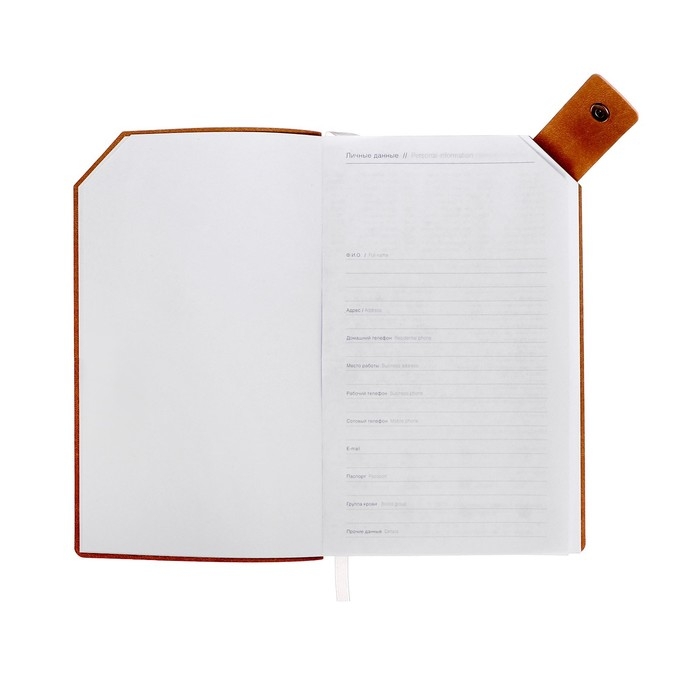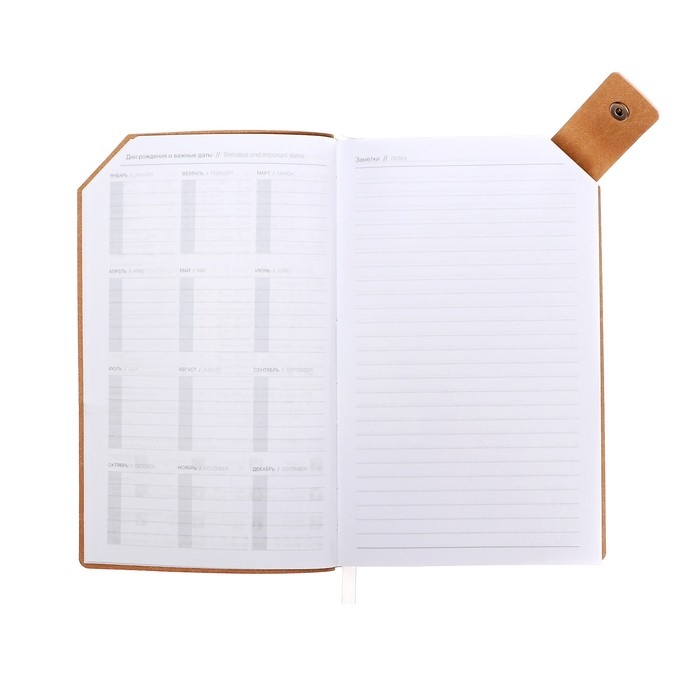 Ежедневник недатированный, 120х200 мм 128 листов, кожзам, блок серый 70 г/м2, ляссе, хлястик с цветной кнопкой, бежевый