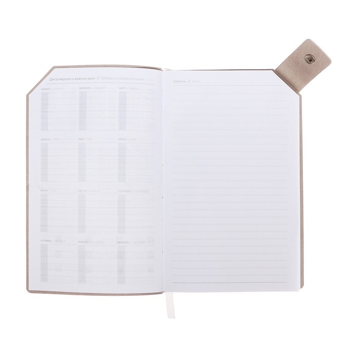 Ежедневник недатированный, 120х200 мм 128 листов, кожзам, блок серый 70 г/м2, ляссе, хлястик с цветной кнопкой, серый