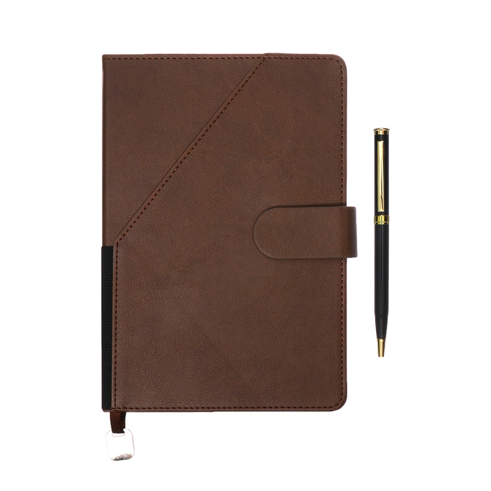 Ежедневник недатированный А5, 140л, клетка, к/зам, с ручкой, в подар. короб., Коричневый