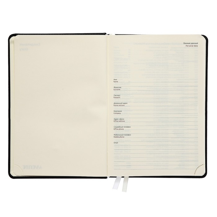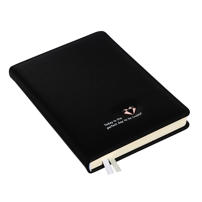 Ежедневник недатированный A5, 160 листов, deVENTE. Be happy!, твёрдая обложка из искусственной кожи с поролоном, кремовый блок 70 г/м2, чёрный