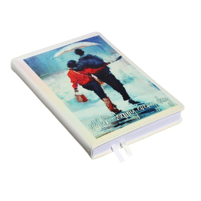 Ежедневник недатированный A5, 160 листов, deVENTE.Couple with umbrella, твёрдая обложка из искусственной кожи с поролоном, 2 ляссе, блок 70 г/м2