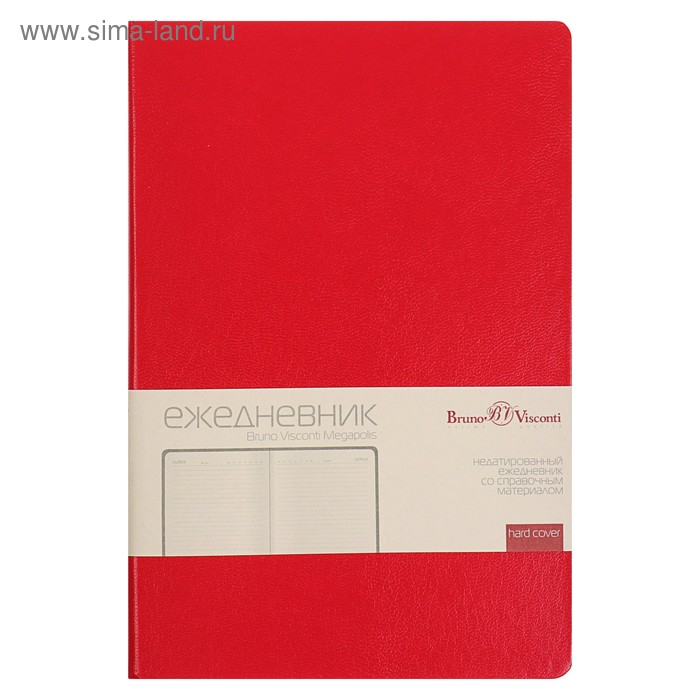 Ежедневник недатированный А5, 160 листов Megapolis, твёрдая обложка, искусственная кожа, красный