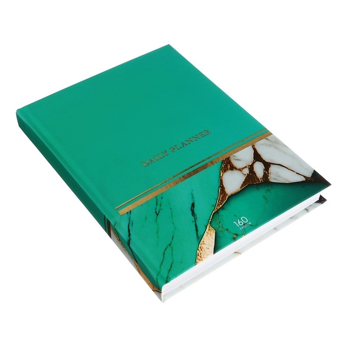 Ежедневник недатированный на сшивке А5 160 листов, картон 7БЦ, матовая ламинация, фольга "Мрамор бирюз. Коллаж"