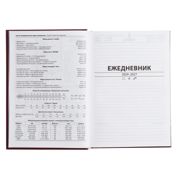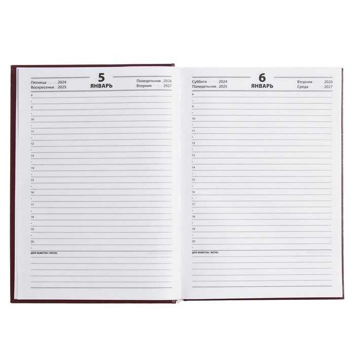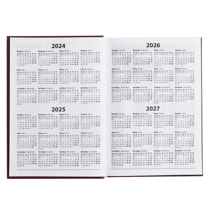 Ежедневник полудатированный на 4 года А5, 192 листа, обложка бумвинил, бордовый