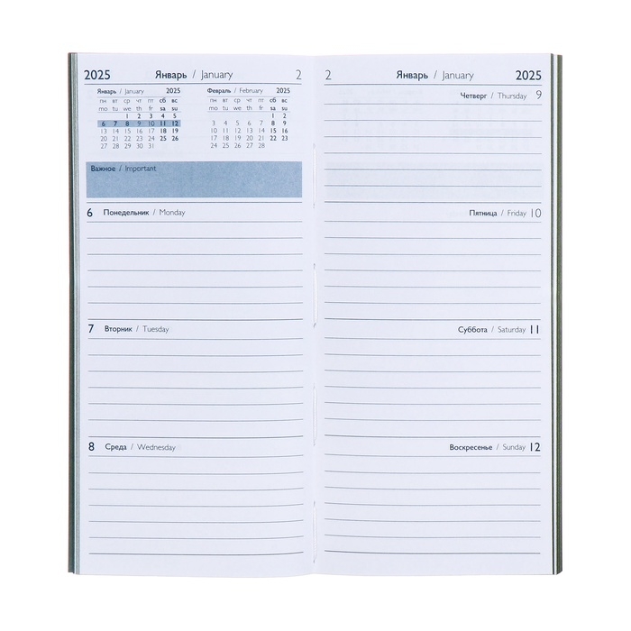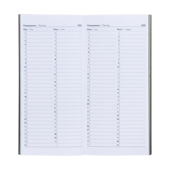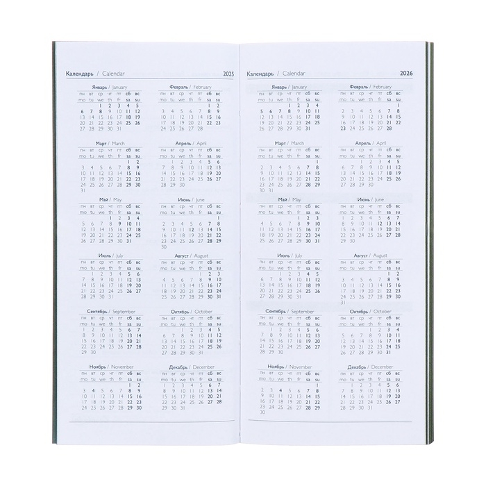 Еженедельник датированный 2025 года, 80х165 мм, 64 листа ESCALADA, мягкая обложка из искусственной кожи, блинтовое тиснение, блок 70 г/м², зелёный