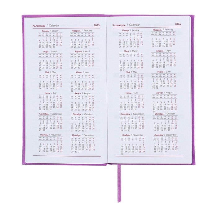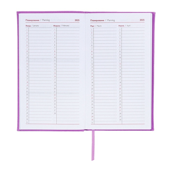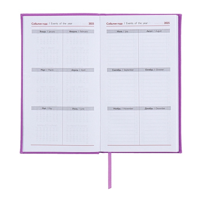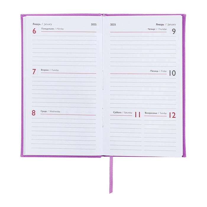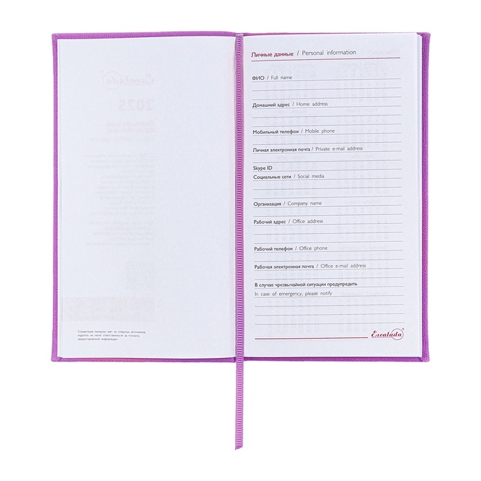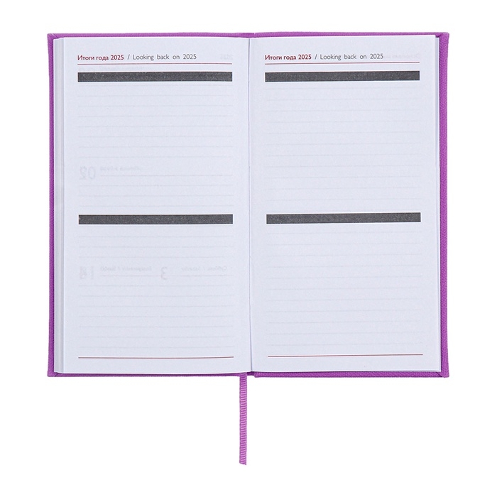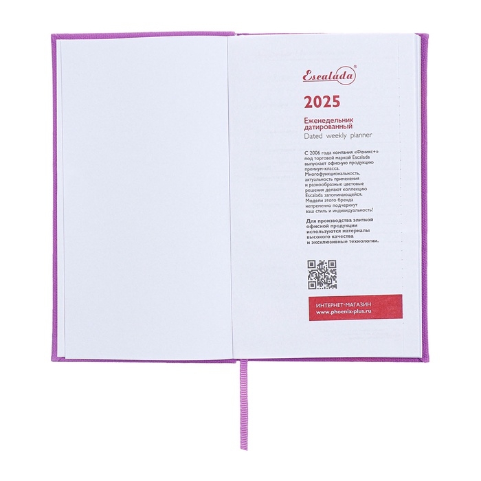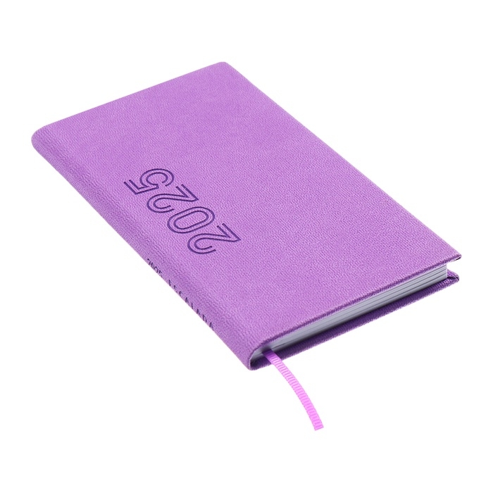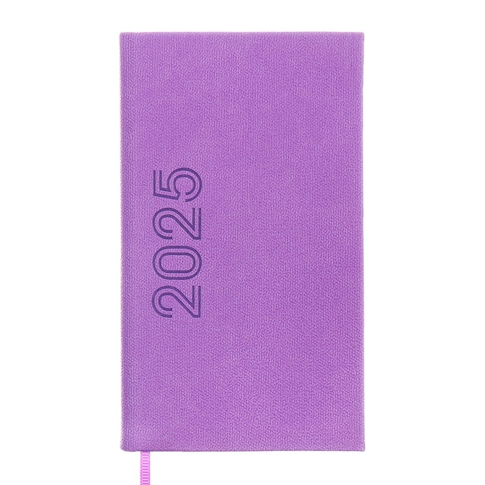 Еженедельник датированный 2025 года, 85х145 мм, 64 листа ESCALADA, твердая обложка из искусственной кожи, блинтовое тиснение, блок 70 г/м², сиреневый
