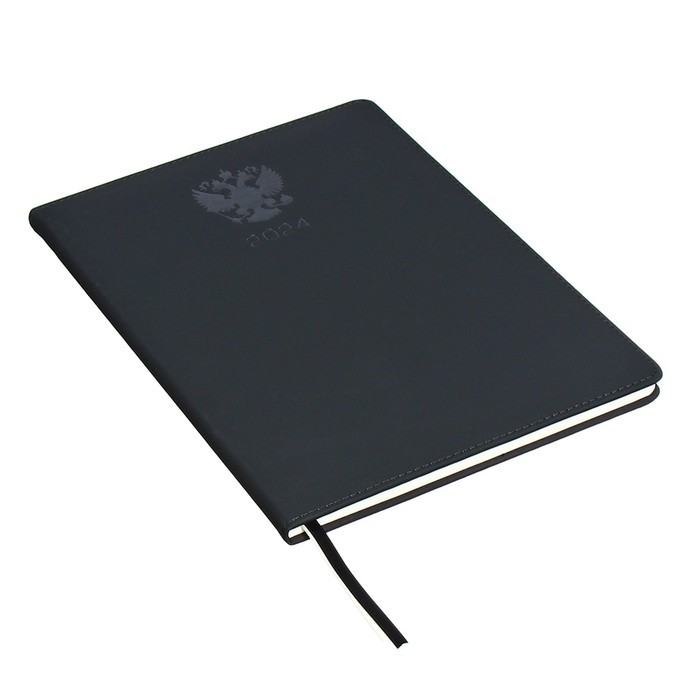 Еженедельник датированный 2025 года, A4, 64 листа, deVENTE.Emblem, твёрдая обложка из искусственной кожи с поролоном, ляссе, кремовый блок 70 г/м2, чёрный