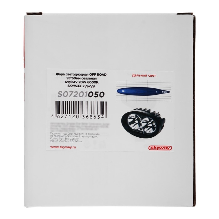 Фара светодиодная Skyway OFF ROAD, овальная, 12/24 В, 20 Вт, 2 диода, 95х60 мм