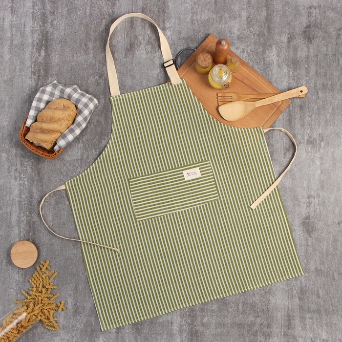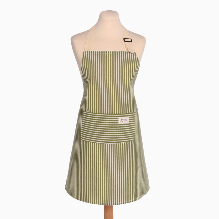 Фартук Доляна с карманом, цв.зеленый, 70*65±4см, 100% хл, рогожка
