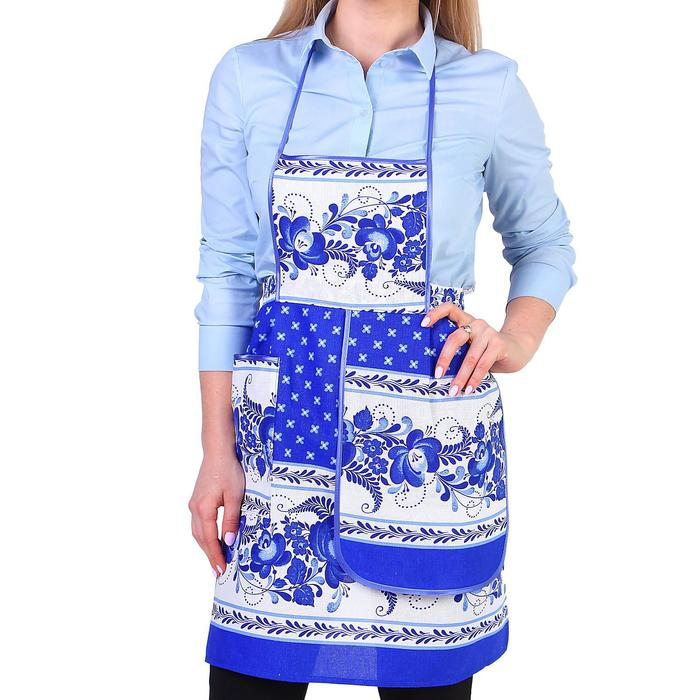 Фартук «Гжель», сувенирный, с карманом и полотенцем
