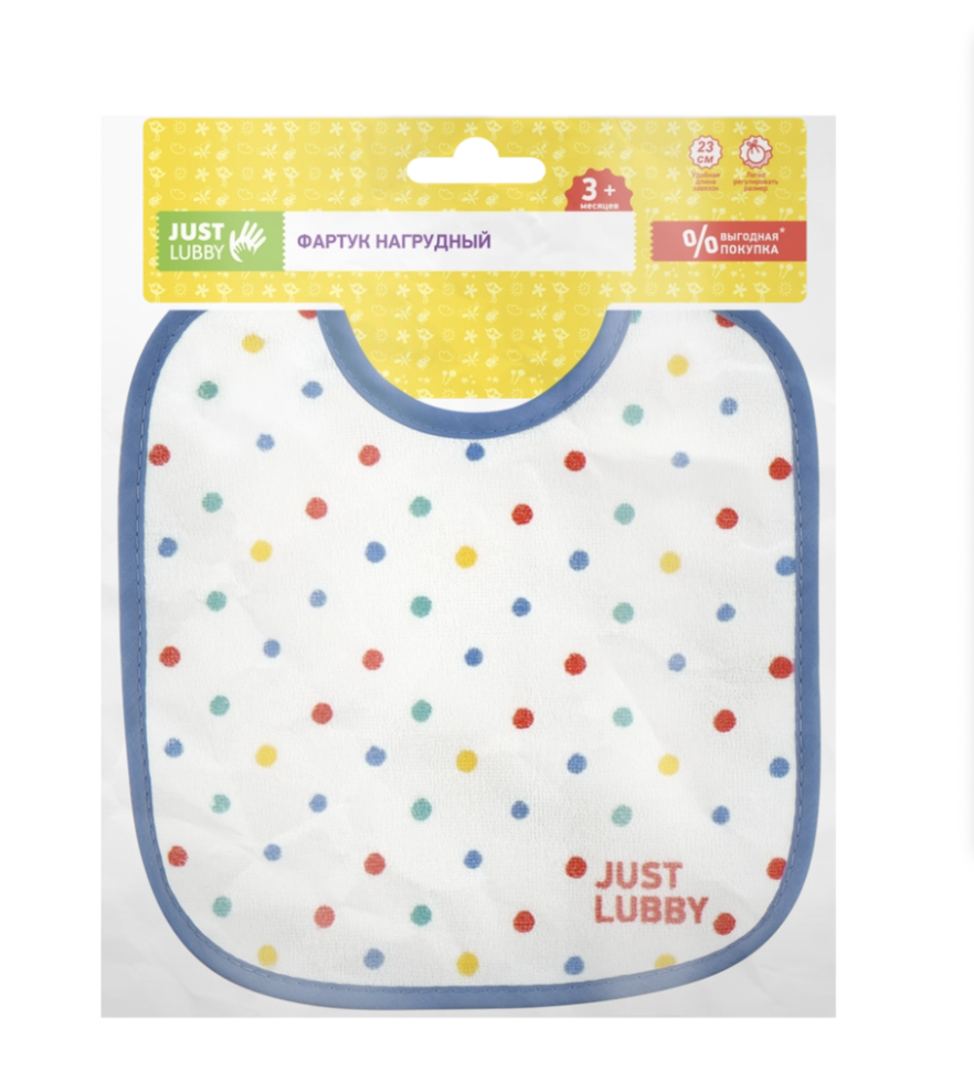 21х1х15см. Фартук нагрудный LUBBY Just на завязках защитит одежду малыша во время кормления и избавит родителей от дополнительных хлопот. Красивый и прочный фартук LUBBY Just с непромокаемым слоем устойчив к воздействию влаги и без ущерба переживает контакт с пюре и другими продуктами. Завязки позволяют легко контролировать длину изделия и регулировать размер горловины. Благодаря этому фартук подходит детям разного возраста.
