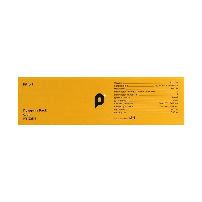 Фен Kitfort КТ-3254, 800 Вт, 2 скорости , 3 температурных режима, бело-чёрный