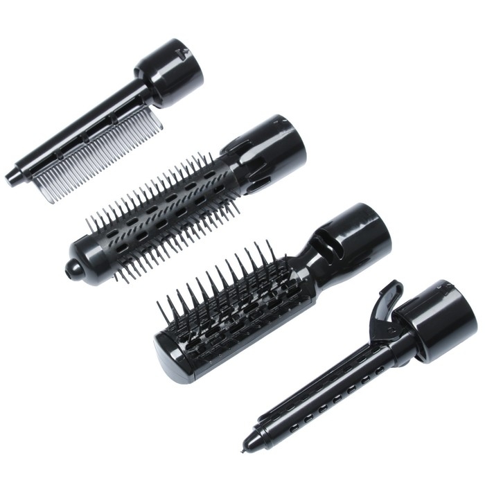 - 4 насадки: круглая щетка, массажная щетка, расчёска, плойка