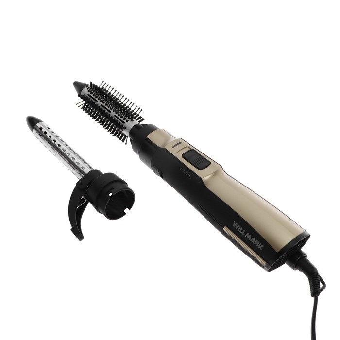 Фен-щётка WILLMARK WHS-113BC, 1200 Вт, 2 насадки, ионизация, чёрно-золотая