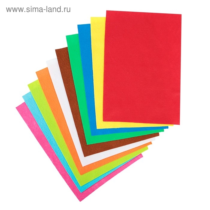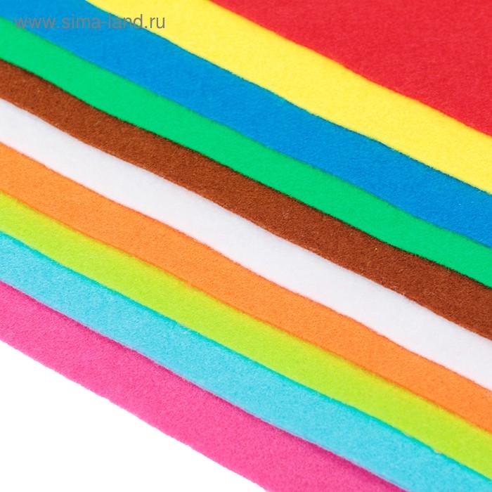 Фетр цветной набор, толщина-1 мм, формат А4, 10 листов, 10 цветов