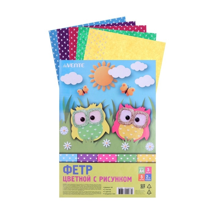 Фетр цветной мягкий с рисунком A4 deVENTE. Hearts 5 цветов, 5 листов, толщина 2 мм