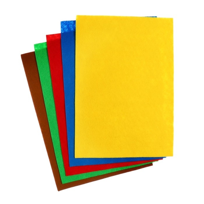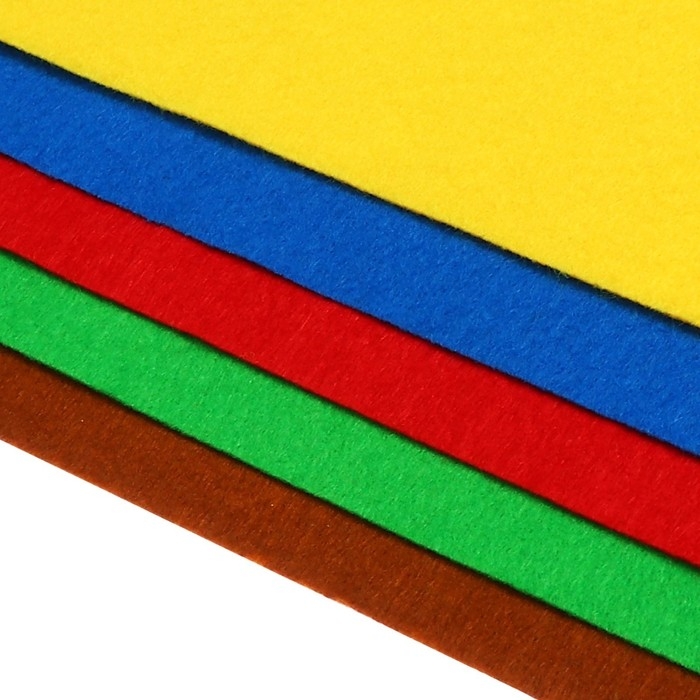 Фетр цветной набор, толщина-1 мм, формат А4, мягкий, 5 листов, 5 цветов, яркие цвета