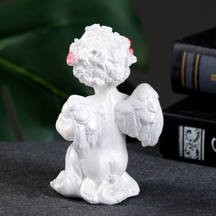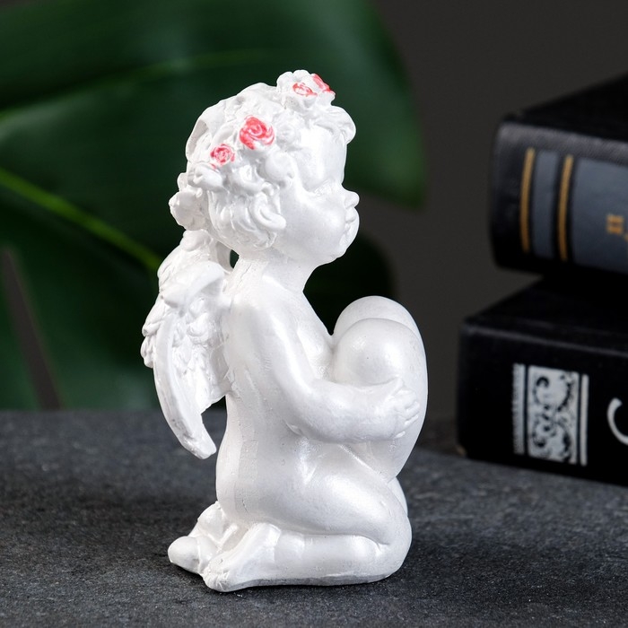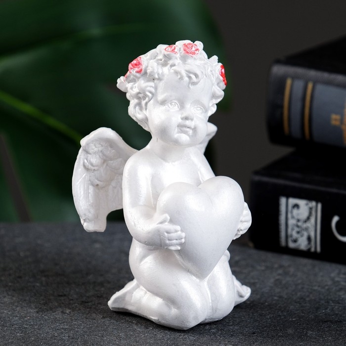 Фигура "Ангел с сердцем на коленях" перламутр, 10х6х5см