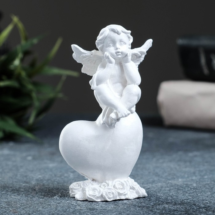 Фигура "Ангел сидит на сердце" перламутровый, 4х9х3см