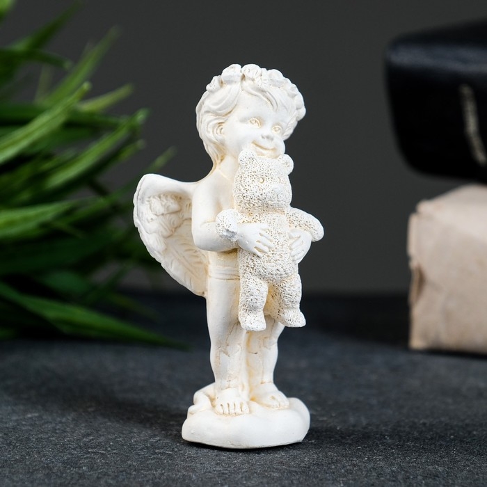 Фигура "Ангелочек с мишкой стоит" позолота, 9х4х3см
