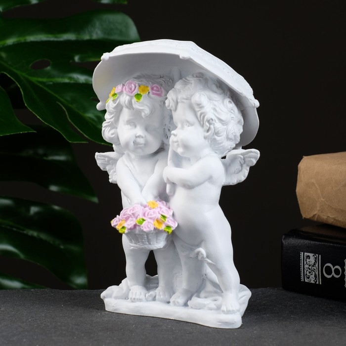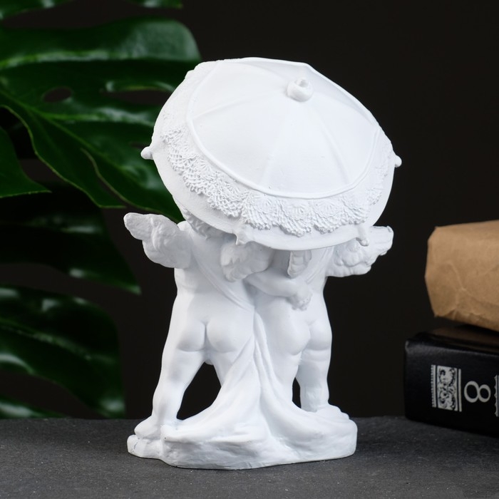 Фигура "Ангелочки под зонтом" белый 9х11х15см