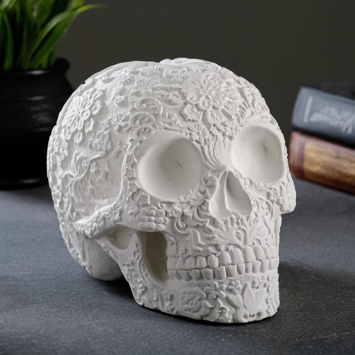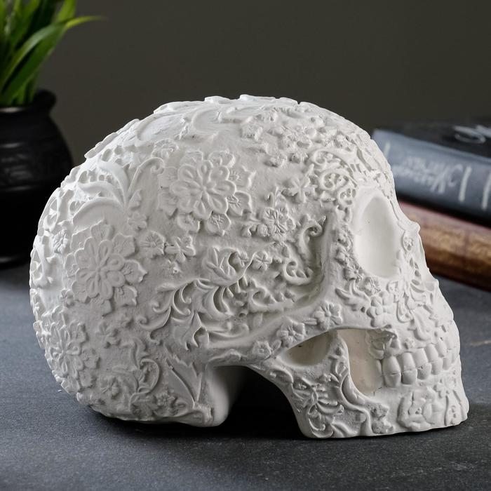 Фигура "Череп резной" белый, 13см