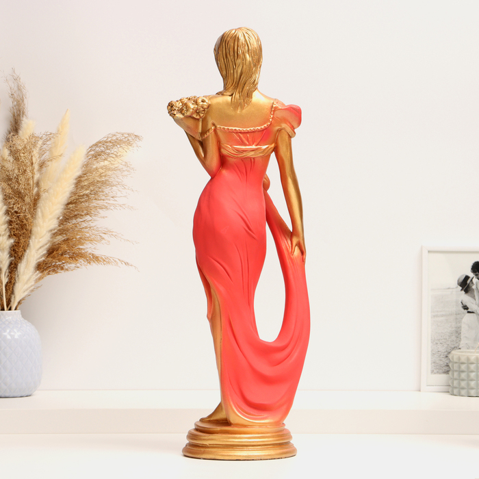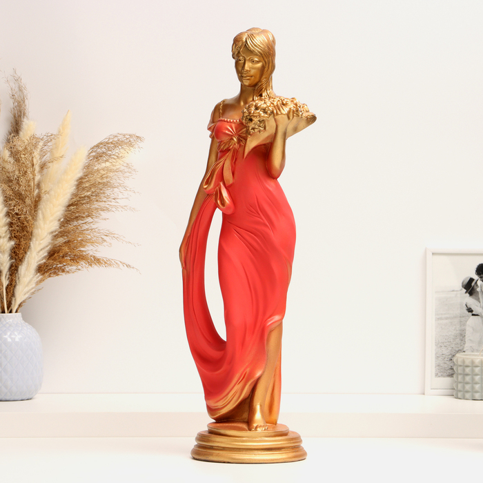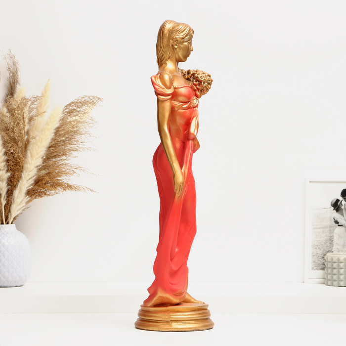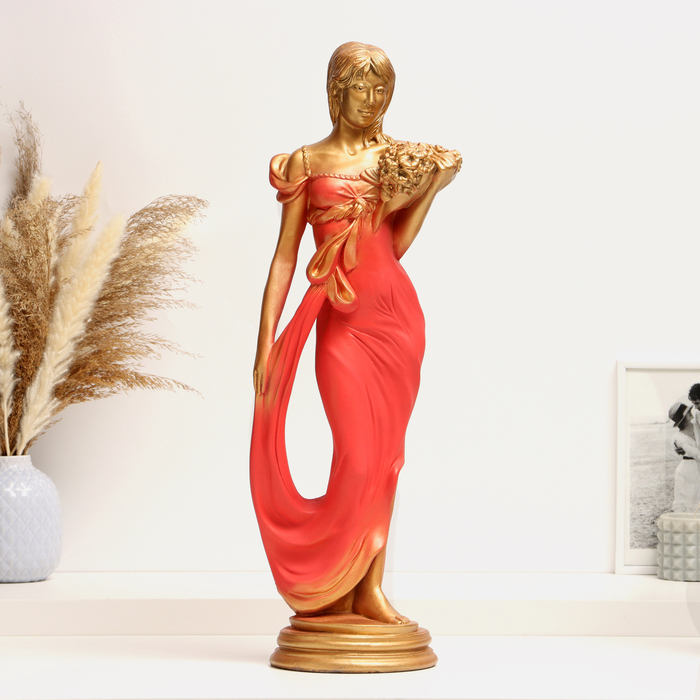 Фигура "Девушка с букетом" бронза/красный, 20х15х56см