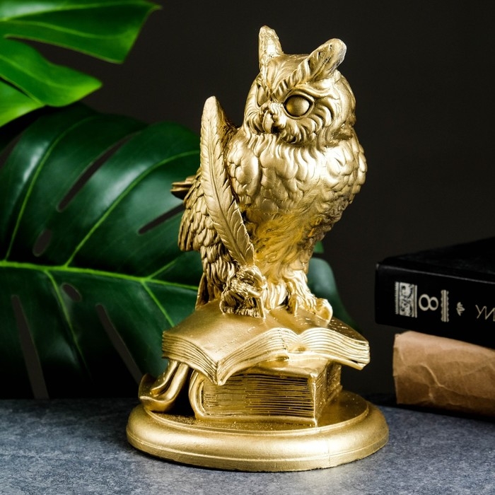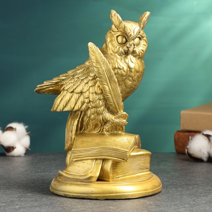 Фигура "Филин на книгах большой" золото, 21х14х13см