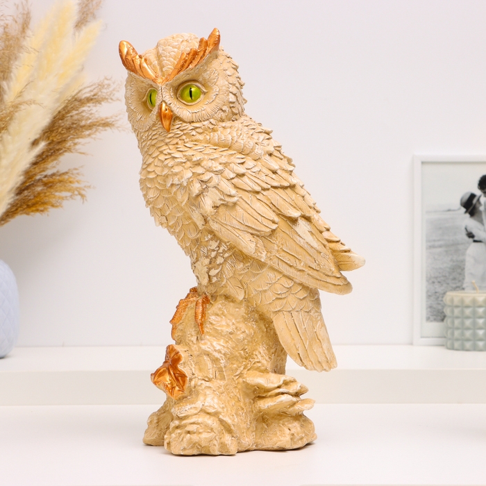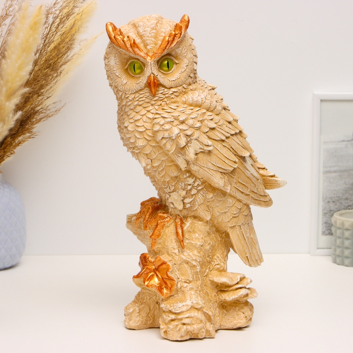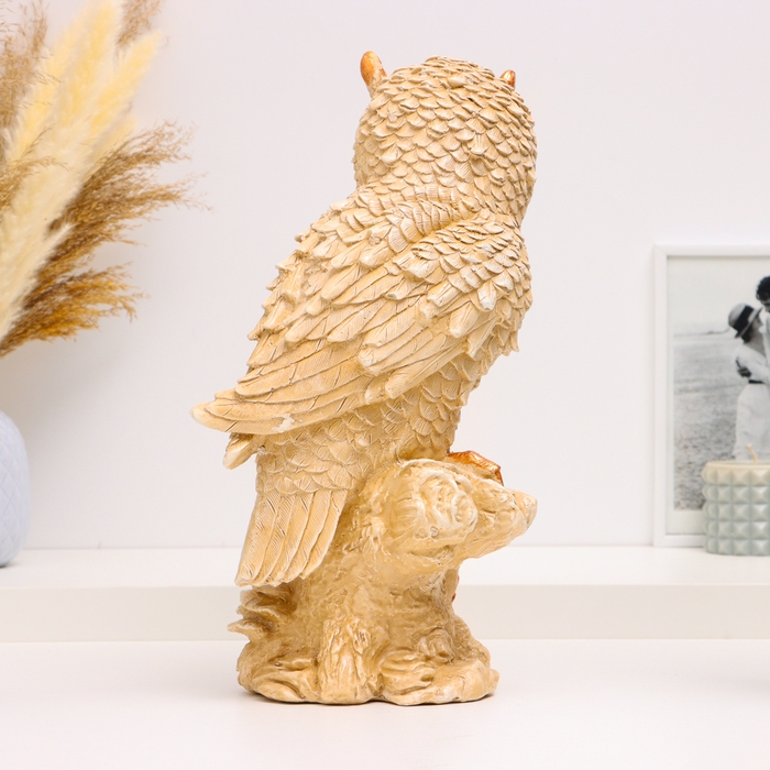 Фигура "Филин на пеньке большой" бежевый, 40х15х15см