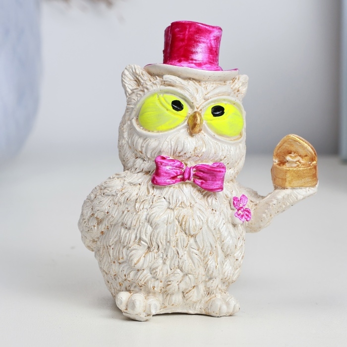 Фигура "Филин с кольцом" бежевая, 8,5х5х7см