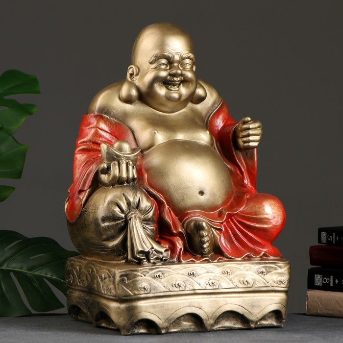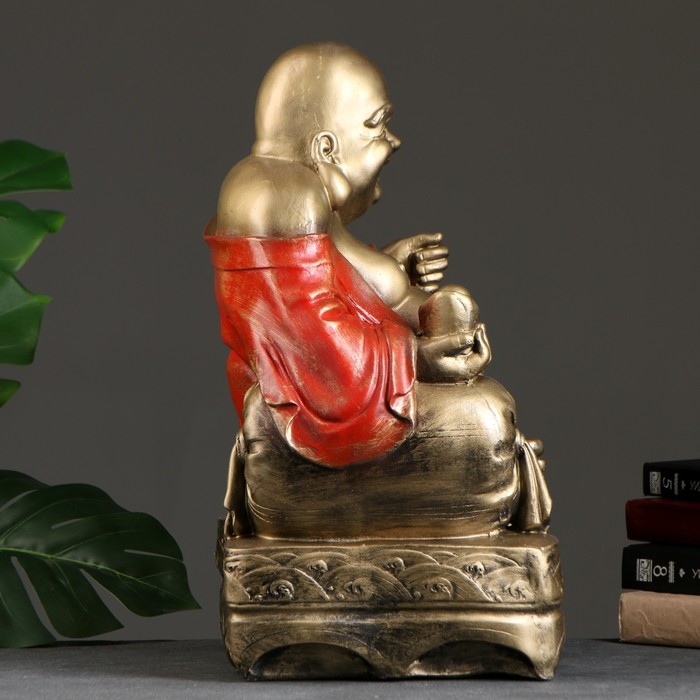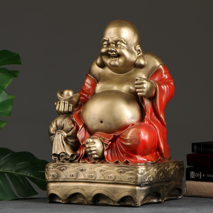 Фигура "Хотей сидя большой" бронза, красный, 32х25х51см