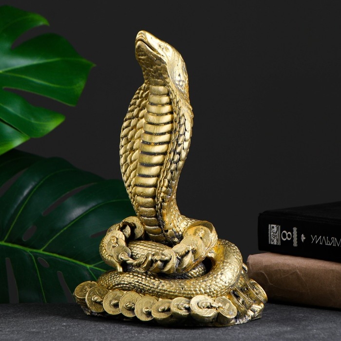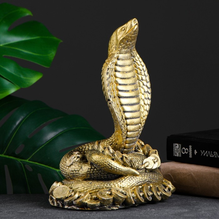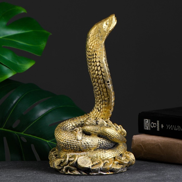 Фигура "Кобра на деньгах" золото, 26х16х10см