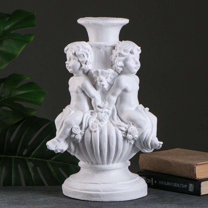 Фигура - подставка "Три ангела на шаре" белая, 26х26х44см