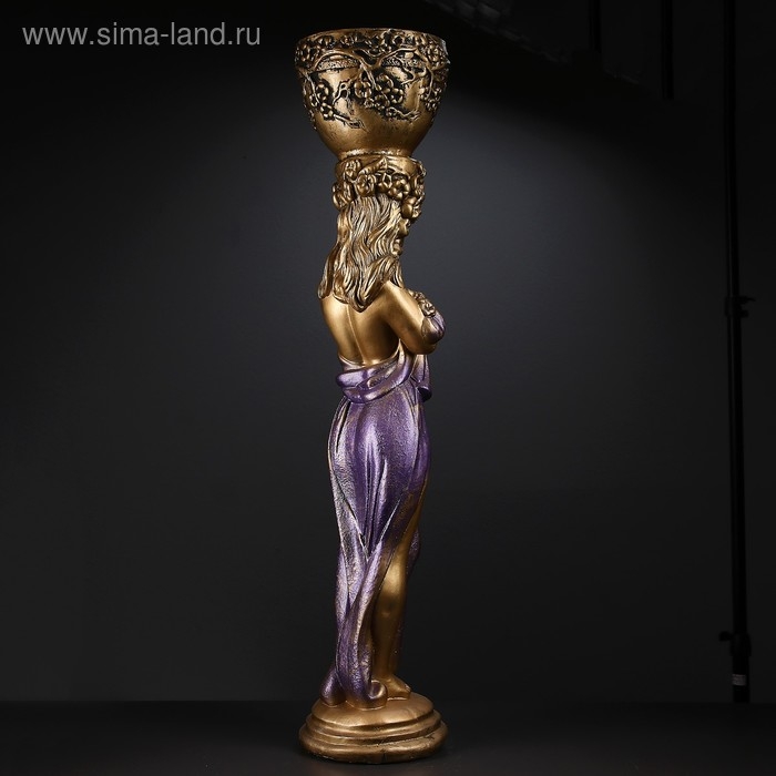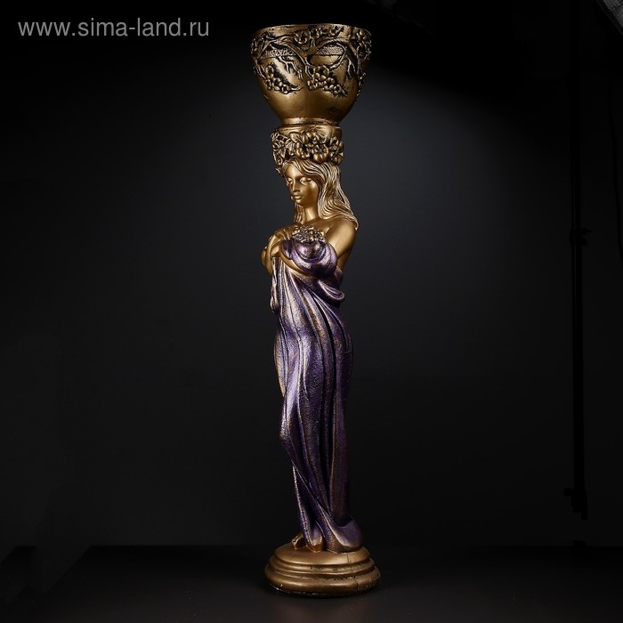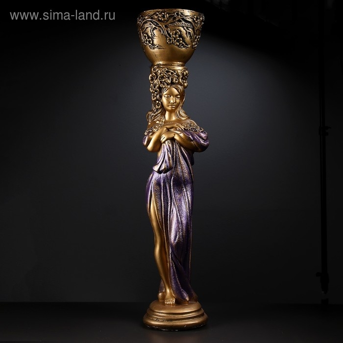 Фигура с кашпо "Девушка стоя с цветами" фиолетовая, 104х23х25см