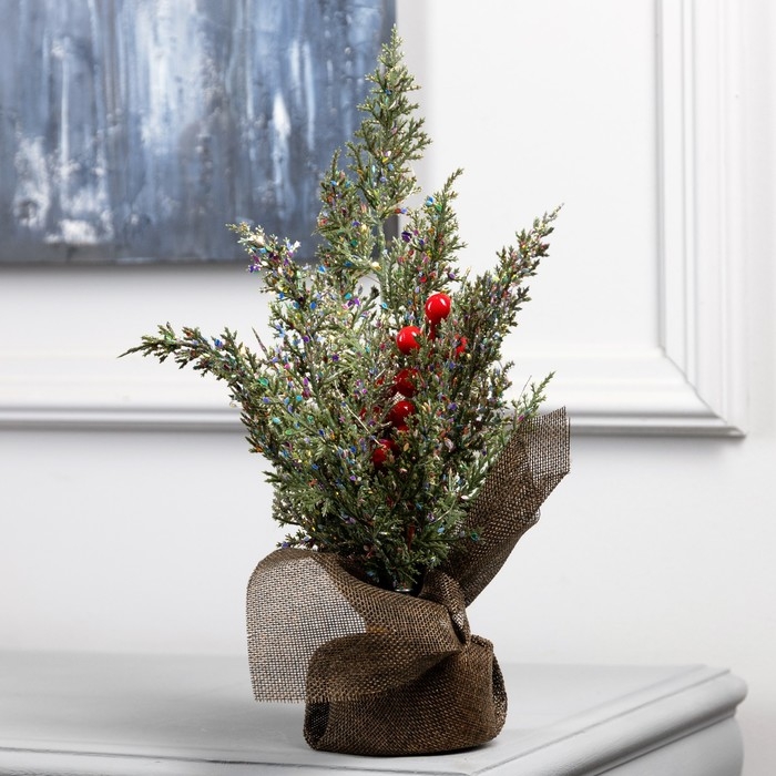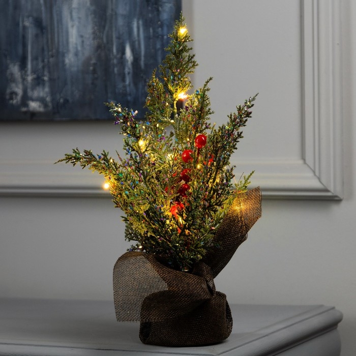 Фигура светодиодная «Ель и ягоды» 30 x 23 x 20 см, 10 LED, батарейки AG13x3 (в комплекте), свечение тёплое белое