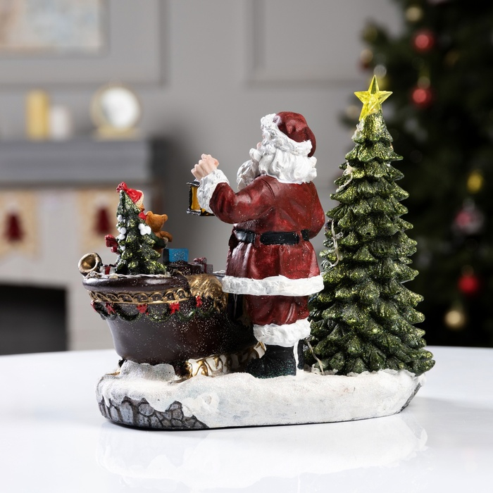 Светодиодная фигура «Дом с Дедом Морозом» 12 × 17 × 4 см, дерево, батарейки АААх2 (не в комплекте), свечение тёплое белое